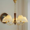 Medieval French pleated fabric all copper chandelier Nordic living room, dining room, homestay, bedroom, retro walnut wood lamp