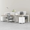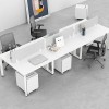 The combination of staff desks is simple and modern, with screens and card slots. The work space is for four staff desks