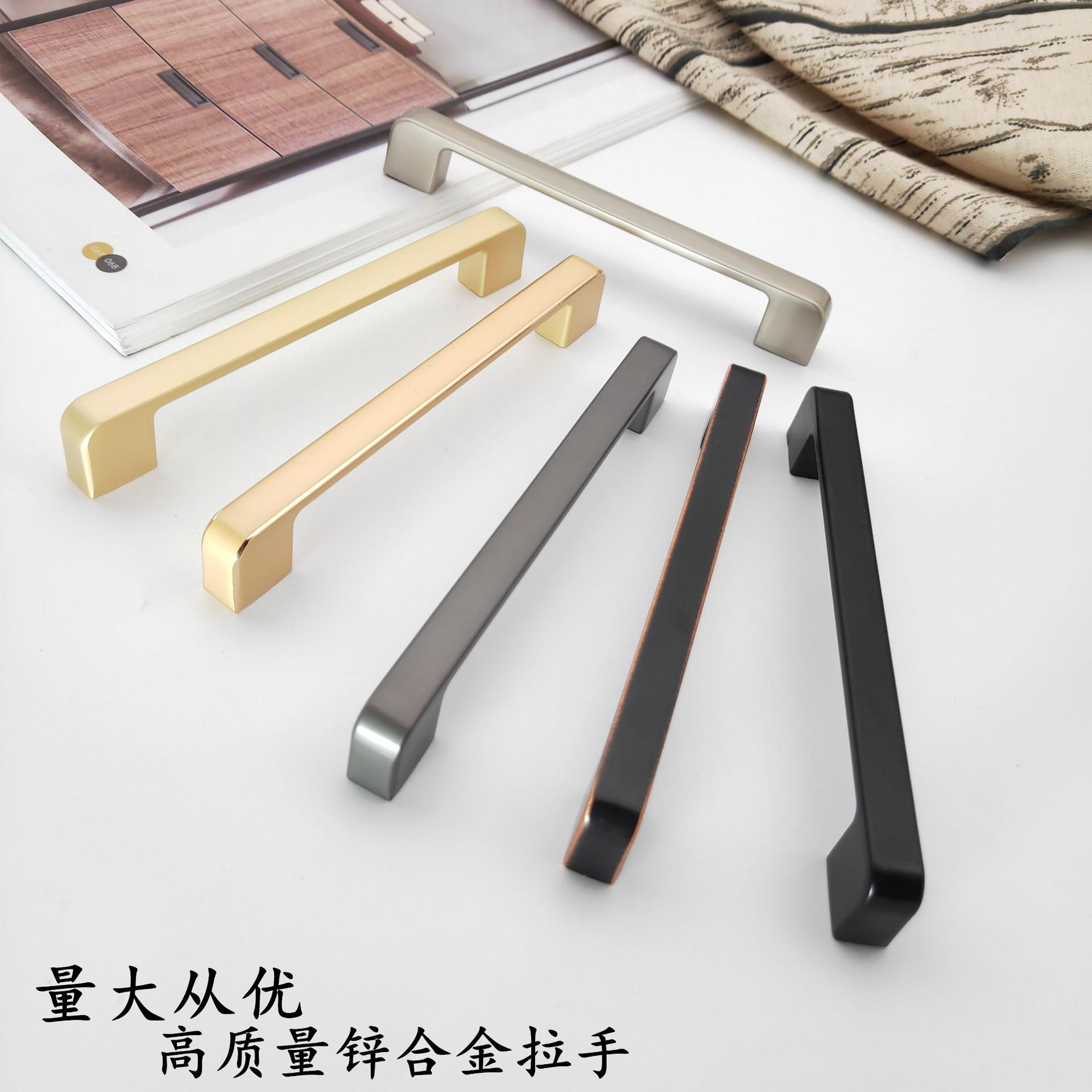 现代简约 黑色金色锌合金拉手 美式欧式衣柜橱柜抽屉手柄家具五金