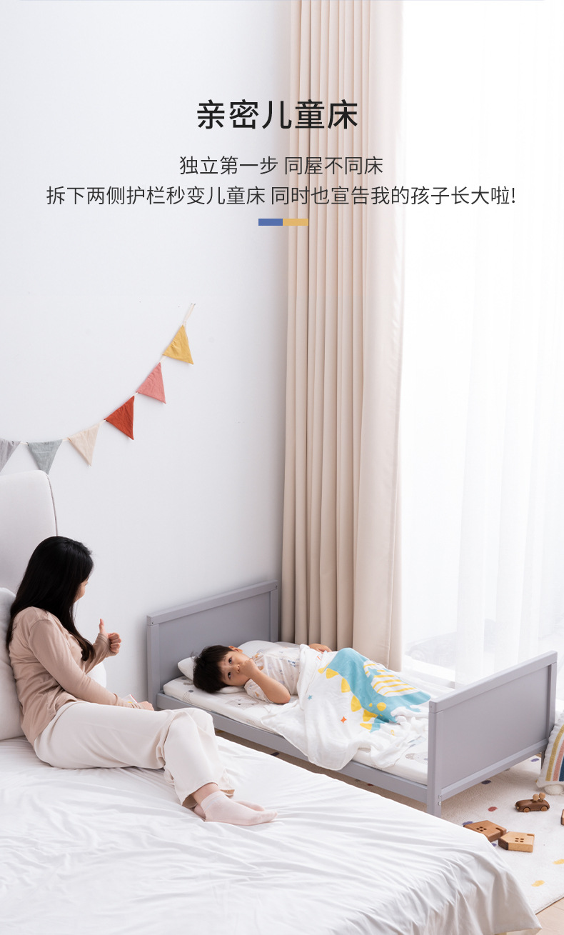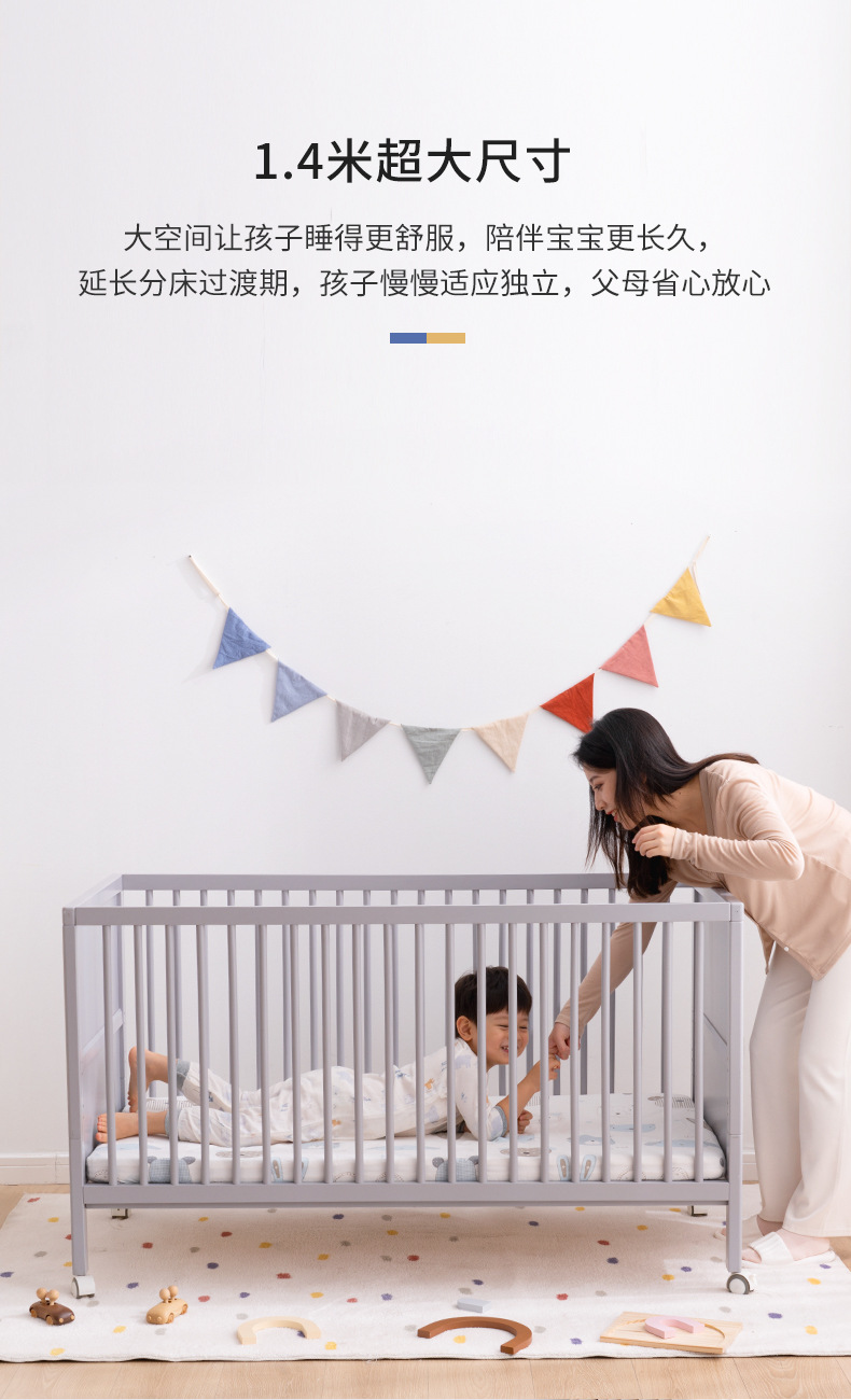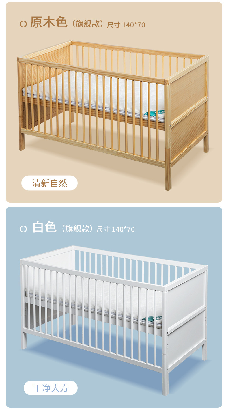 白色北欧实木婴儿床松木拼接床可移动宝宝床多功能儿童床