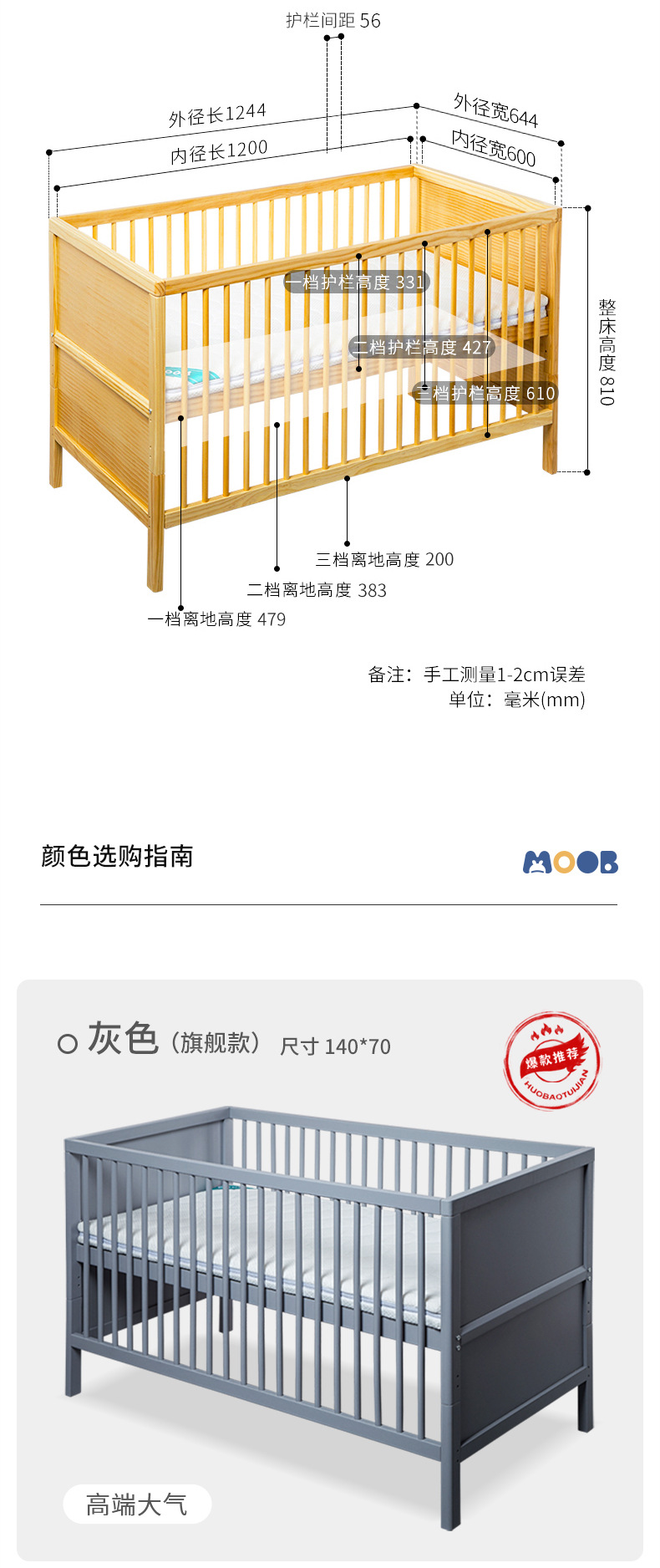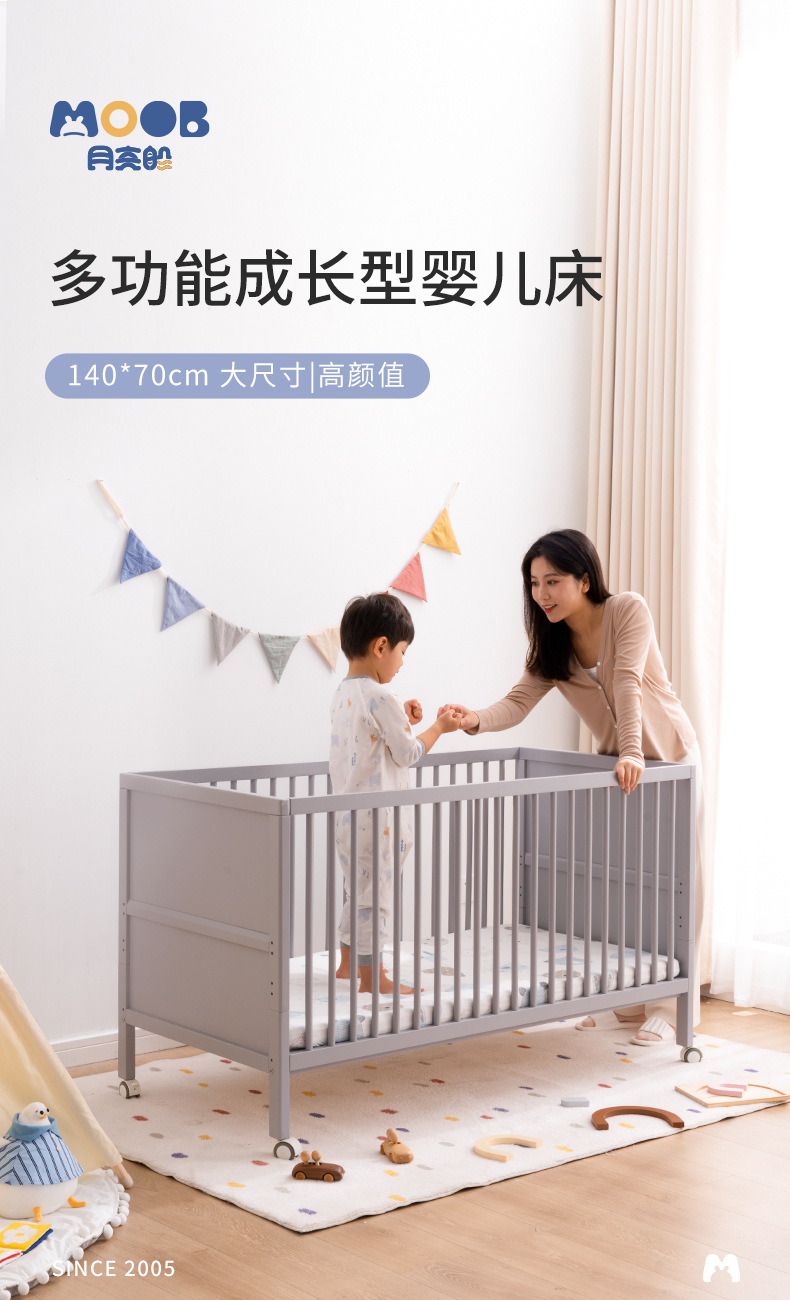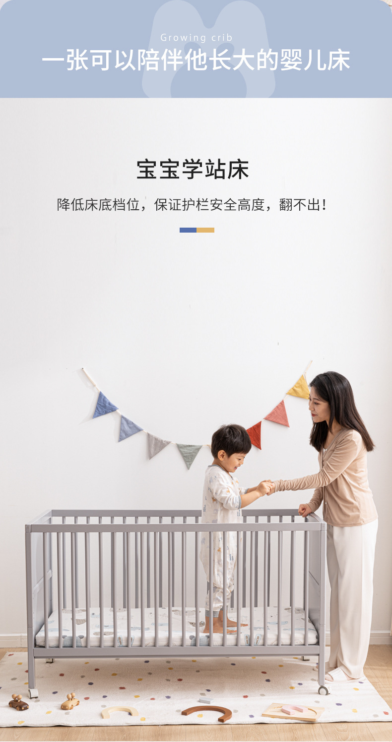 白色北欧实木婴儿床松木拼接床可移动宝宝床多功能儿童床