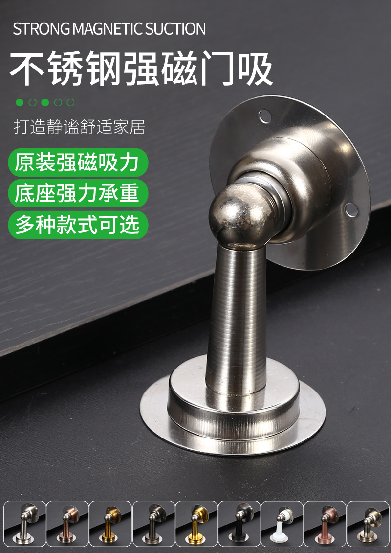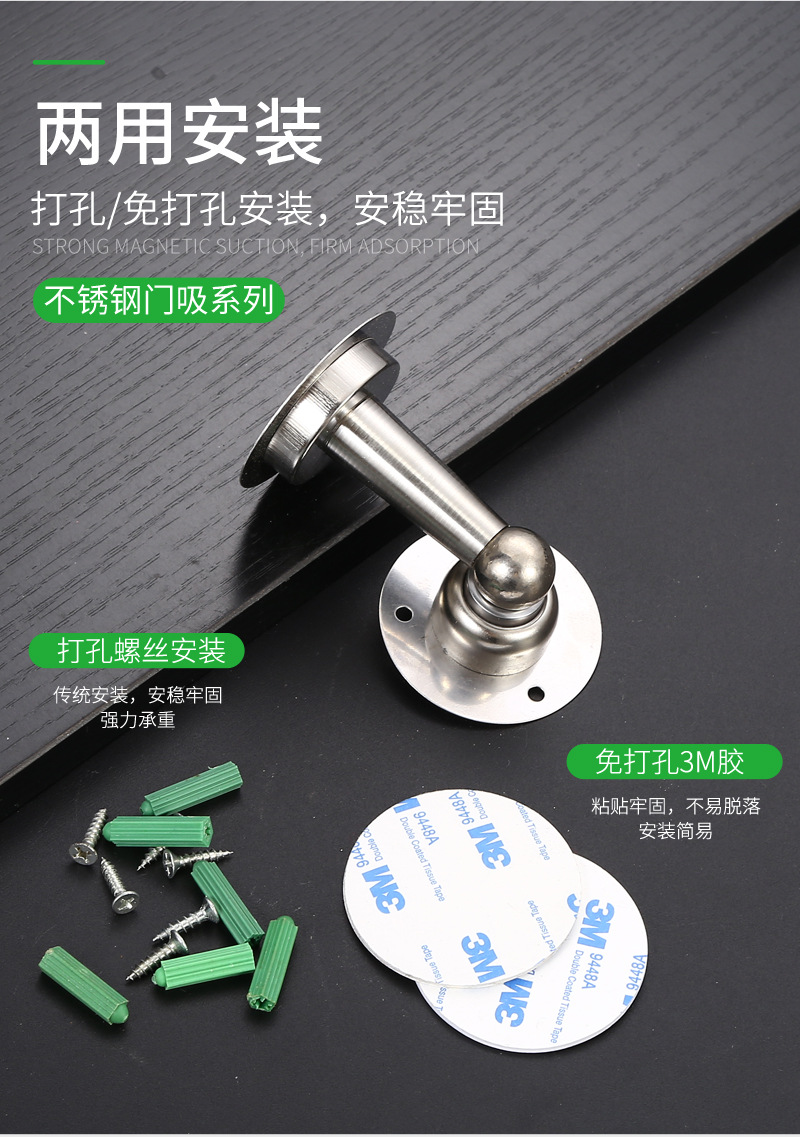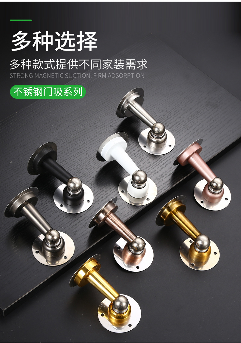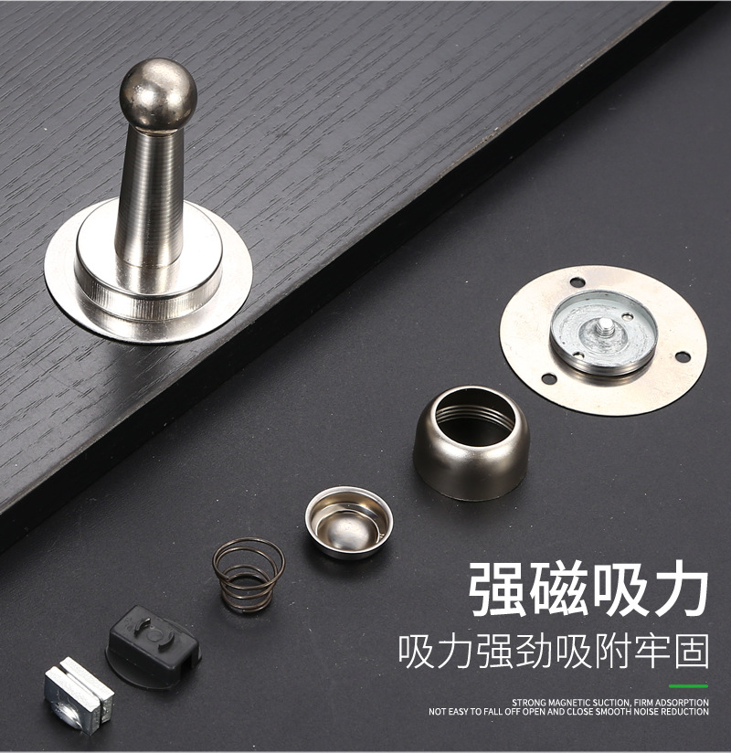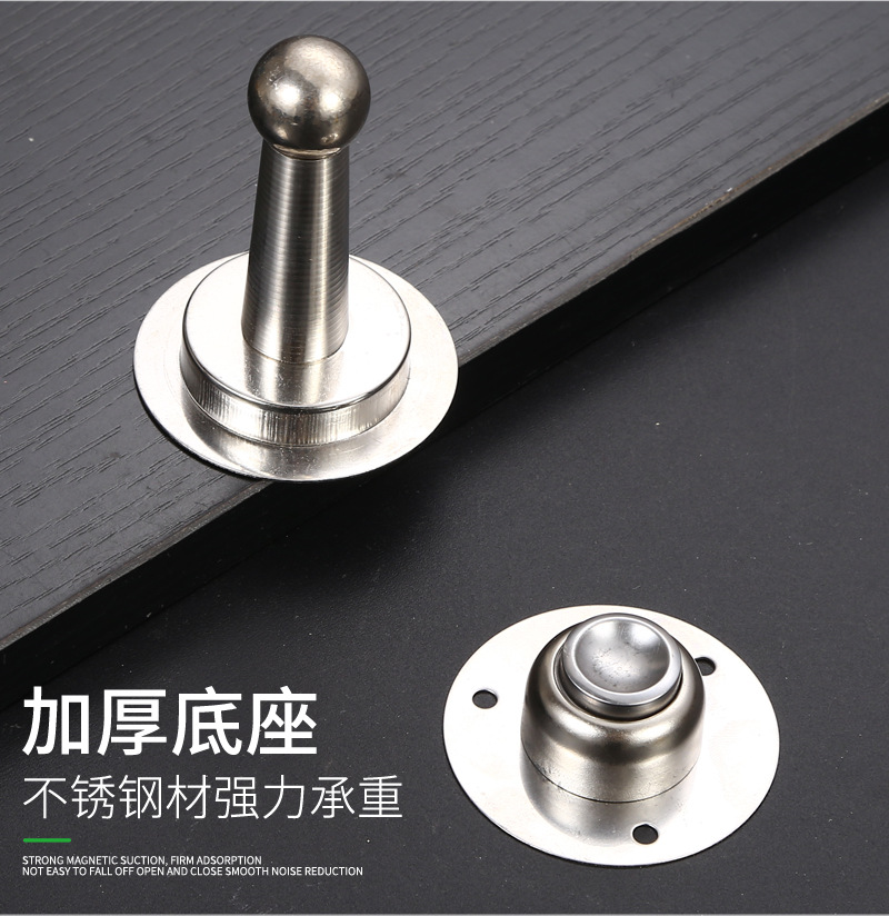 Stainless steel perforated door with strong magnetic invisible suction, bathroom, bedroom door stop, anti-collision door stopper, thickened wall suction