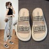 Fish mouth sandals women's 2023 summer new outside wear fashion everything casual slippers elastic canvas flat shoes